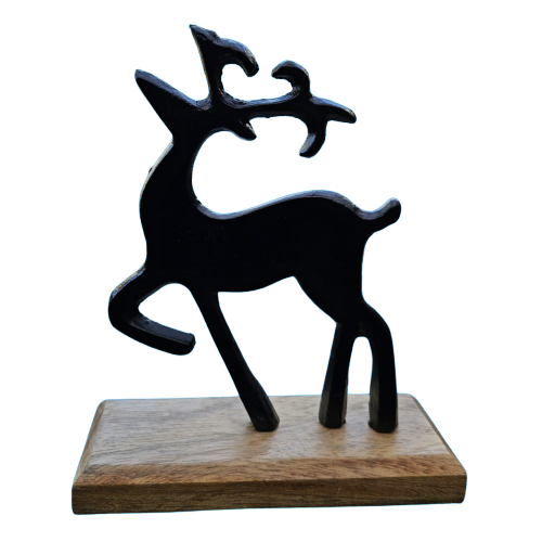 Bringen Sie mit unserem wunderschönen Metall-Hirsch auf Holzklotz einen Hauch von Natur in Ihr Zuhause!