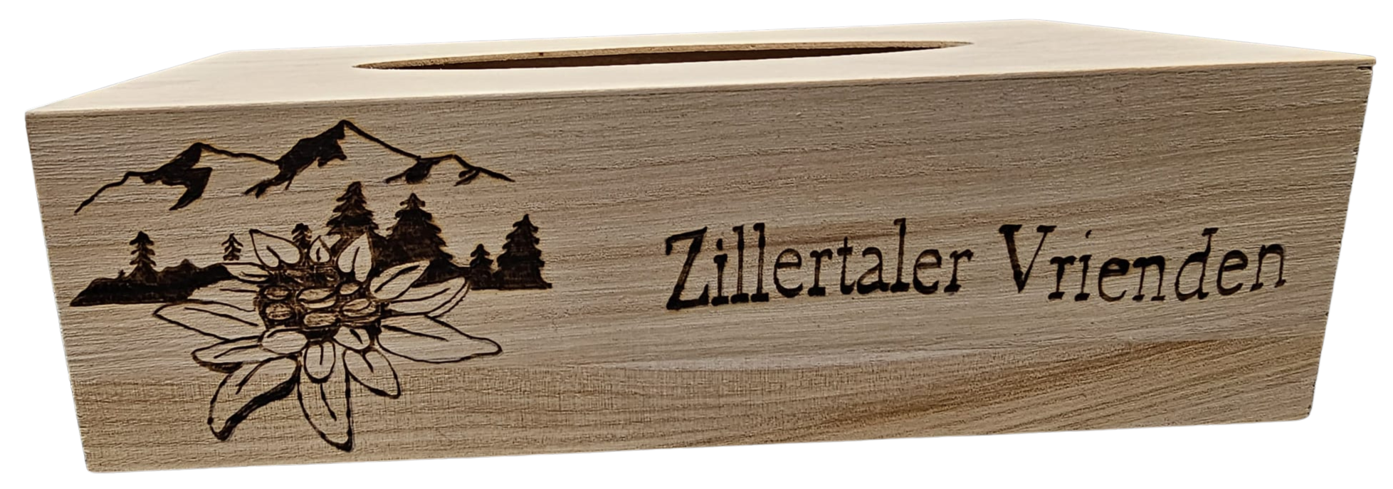 Verleihen Sie Ihrer Einrichtung einen Hauch von Bergcharme mit unserer Taschentuchbox Berge mit Edelweiss Groß!