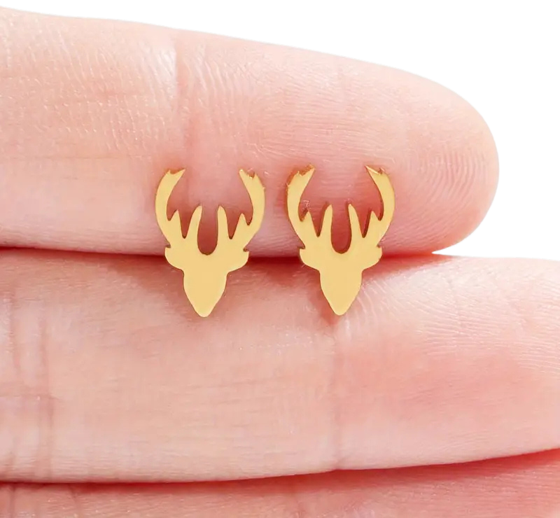 Discover our beautiful stainless steel, precious metal, gold-colored, hypoallergenic deer-shaped earrings! 🦌✨