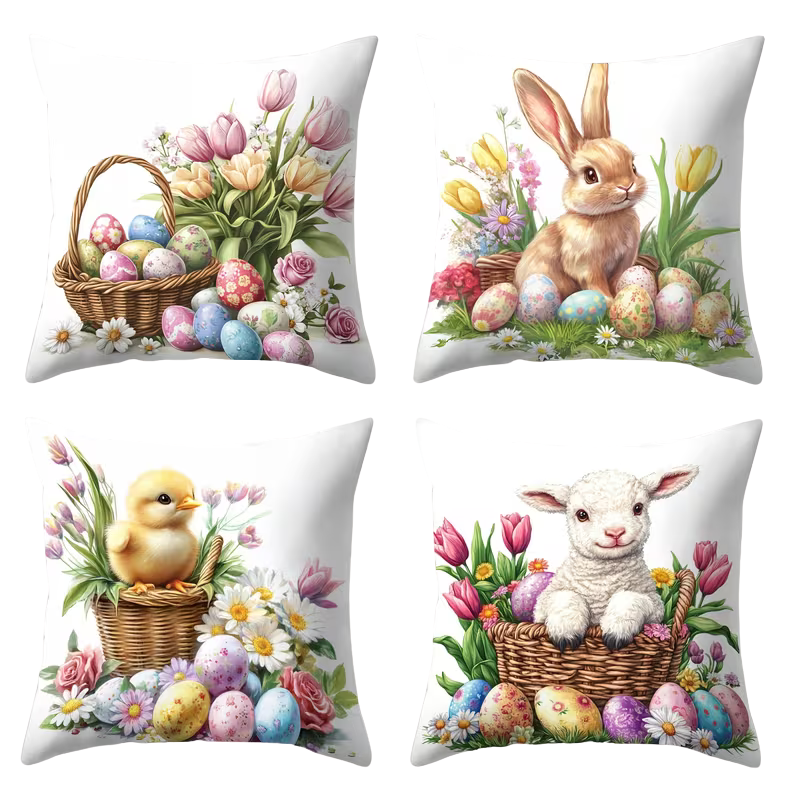 Bring spring vibes into your home with this cozy set of 4 cushion covers β perfect for your sofa, living room, office, or as a festive Easter decoration.