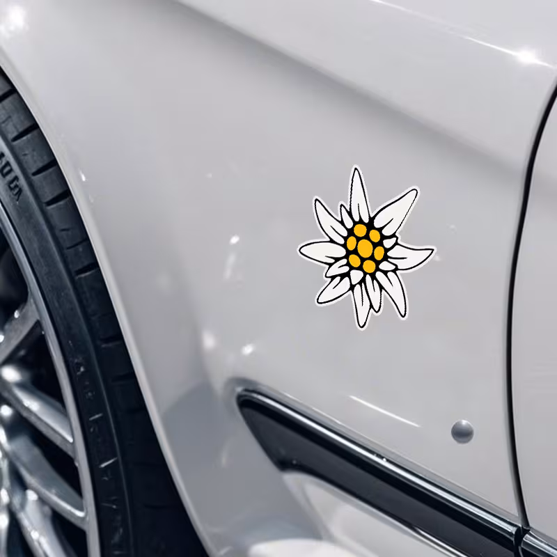 Geef al je spullen een alpine touch met deze stijlvolle Edelweiss‑patroon vinyl stickers — ideaal voor auto’s, laptops, waterflessen en gereedschapskisten!