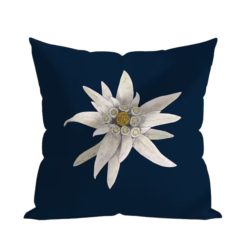 Breng alpine charme in huis met deze stijlvolle kussensloop, versierd met het iconische edelweiss.