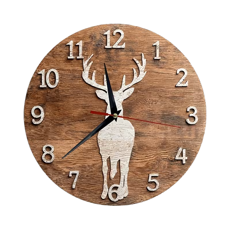 Breng authentieke Alpensfeer in huis met deze stijlvolle, platte wandklok met hertenkopsilhouet uit het Zillertal.